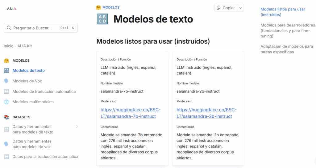 Para que esta infraestructura no se quede en un mero anuncio, se ha creado ALIA KIT, un portal donde se recopilan los recursos necesarios para trabajar con los modelos. En este espacio se publican datasets, metodologías de entrenamiento, documentación técnica y herramientas en castellano, catalán, gallego, valenciano y euskera. El objetivo es que cualquier equipo —desde grupos universitarios hasta desarrolladores independientes— pueda replicar, adaptar y extender los modelos con transparencia.